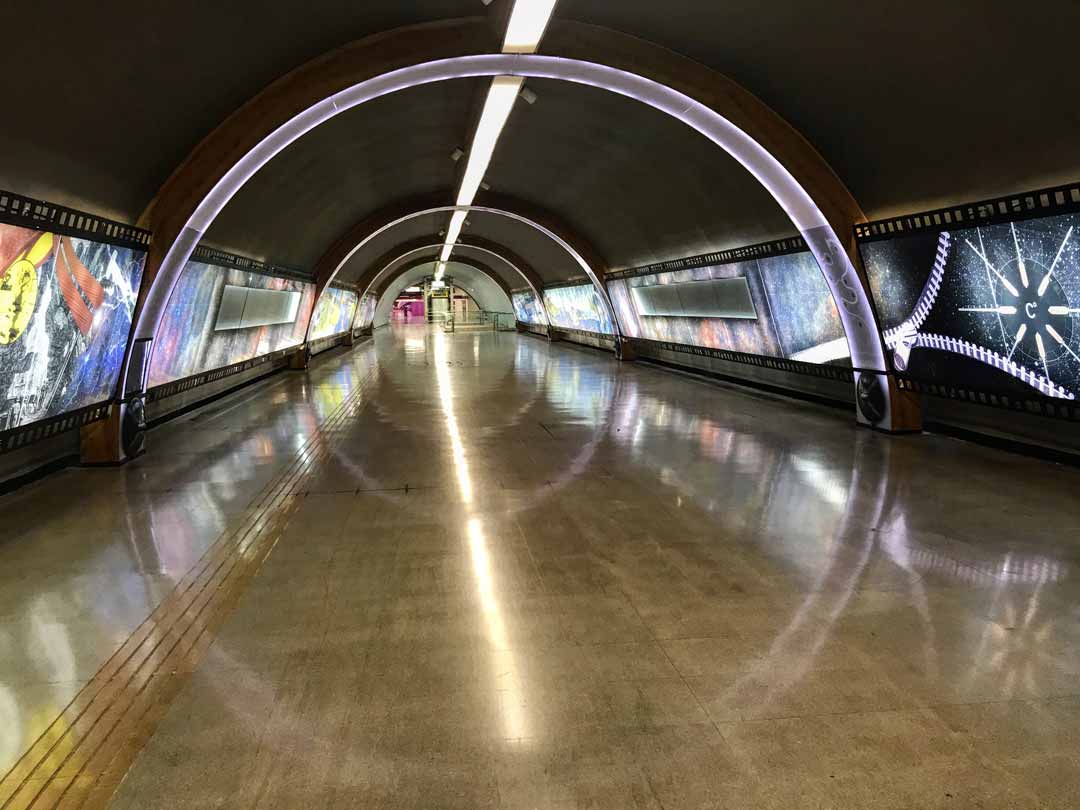 El icónico túnel artístico que conecta las líneas 1 y 6 del Metro de Santiago será reinaugurado con nuevas tecnologías interactivas.