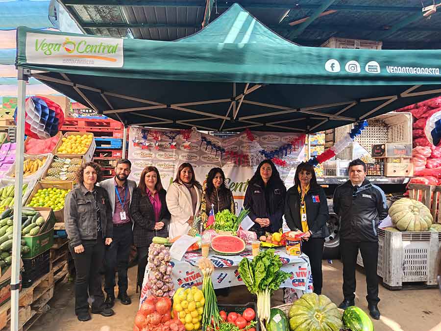 Jueves 11 de septiembre de 2025.– Diversas autoridades de Economía, Agricultura, Salud, Vocería de Gobierno y el Servicio Nacional del Consumidor (Sernac), visitaron la Vega Central de Antofagasta para dar a conocer la «canasta dieciochera», la cual presenta múltiples opciones de compra para los presupuestos de las familias, además de otorgar las principales recomendaciones en materia de inocuidad e higiene de los alimentos. La instancia es parte de la campaña «Unidos por un 18 Seguro» que coordina la Delegación Presidencial Regional de Antofagasta.