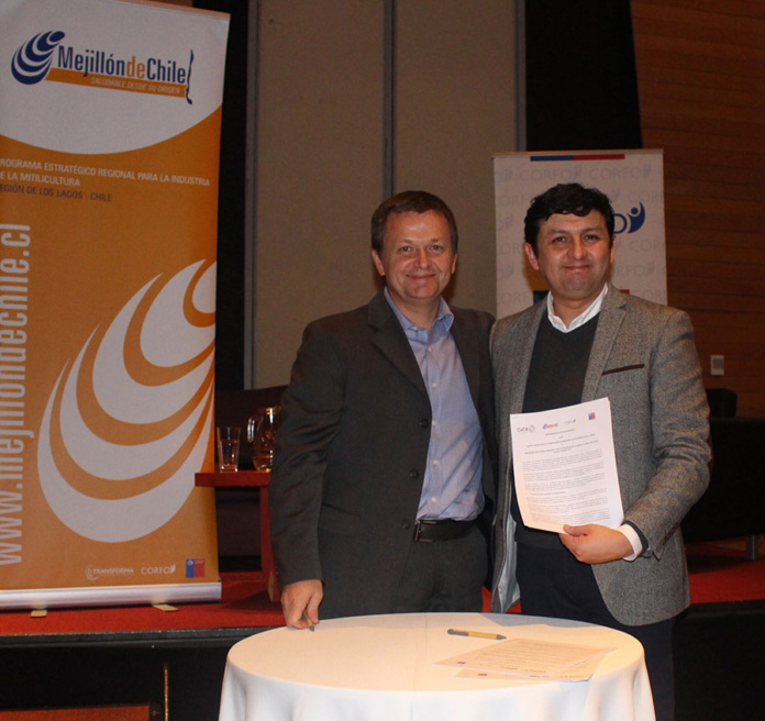 En la ciudad de Castro –y en el marco del seminario-taller «Tendencias en Nuevos Productos y Procesos de la Industria del Mejillón Chileno», organizado por el Programa Estratégico Regional para la Industria de la Mitilicultura de Corfo Los Lagos– se firmó este protocolo de acuerdo con el Centro Tecnológico para la Innovación Alimentaria, CeTA.