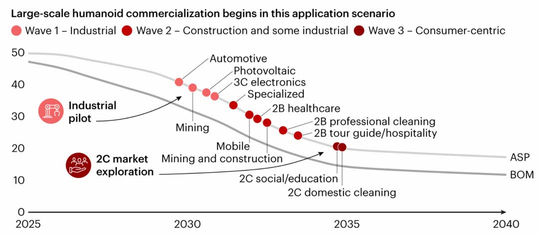 Tercera ola: la etapa final será la consolidación en aplicaciones comerciales y de consumo, como limpieza profesional y doméstica, hospitalidad, educación y turismo.