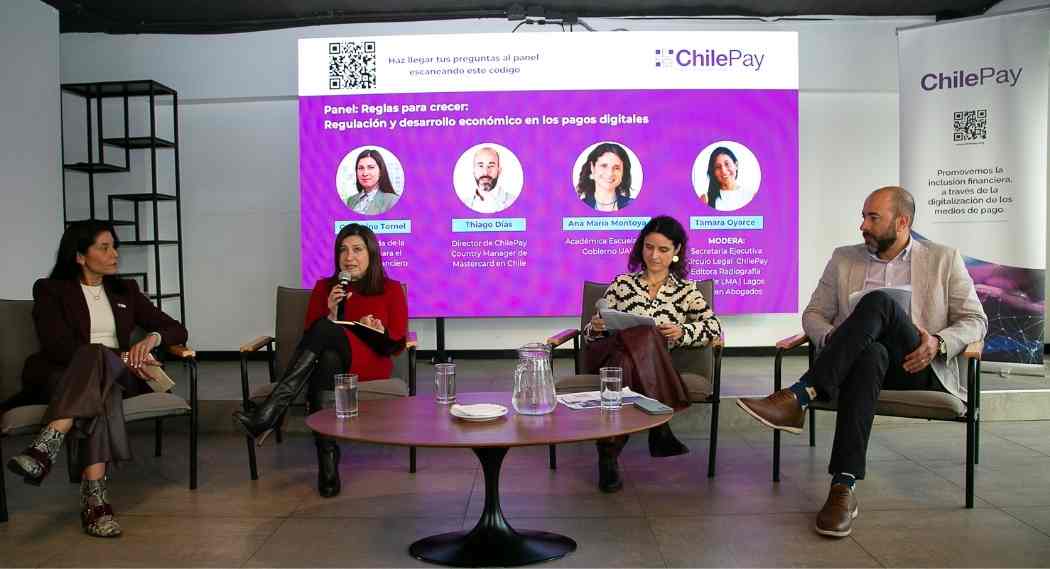 La Radiografía de la Regulación de los Pagos en Chile fue presentada en un evento en el Centro Nace que reunió a los principales actores del ecosistema de pagos. En la instancia se realizó el panel “Reglas para crecer: Regulación y desarrollo económico en los pagos digitales” Regulación y crecimiento: ¿obstáculo u oportunidad?”, en el que participaron Catherine Tornel, comisionada de la Comisión para el Mercado Financiero; Thiago Dias, director de ChilePay y Country Manager de Mastercard en Chile; Ana María Montoya, académica de la Escuela de Gobierno de la Universidad Adolfo Ibáñez y Tamara Oyarce, autora de la radiografía.