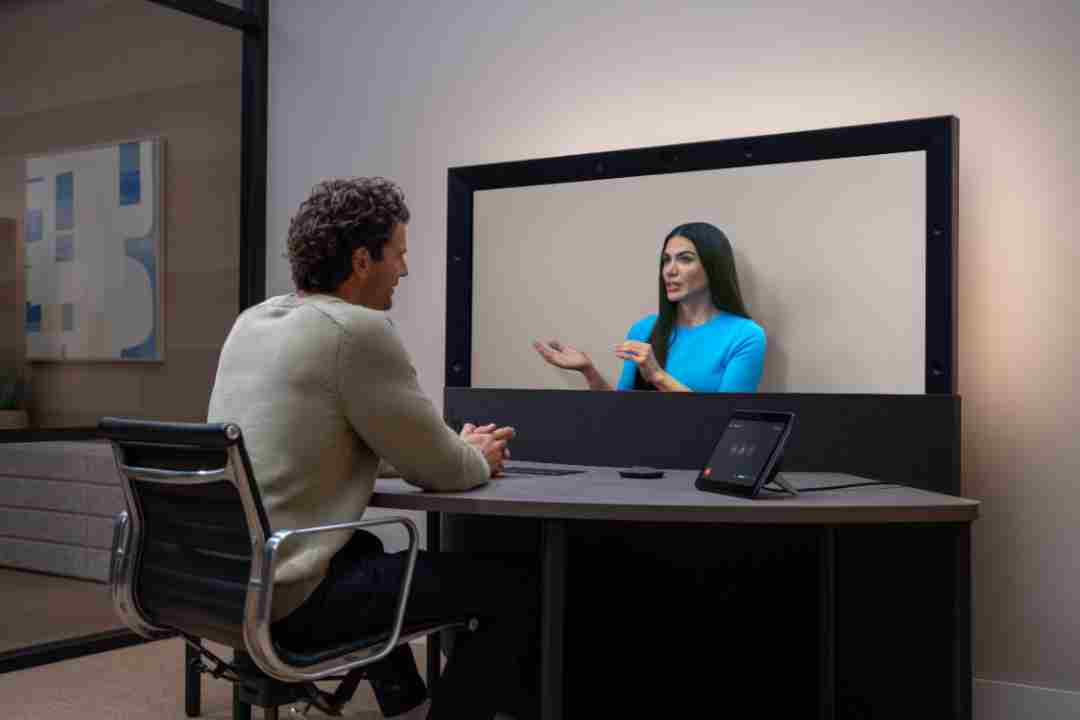combina una innovadora pantalla de campo de luz 3D, iluminación adaptativa, la captura de seis cámaras, audio espacial e inteligencia artificial para crear reuniones realistas e inmersivas, sin necesidad de dispositivos portátiles.