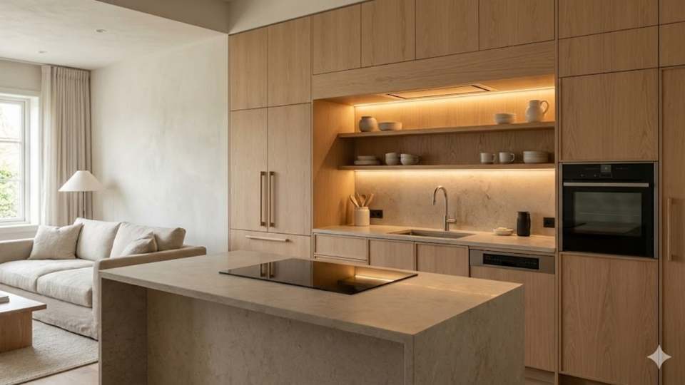 La cocina integrada no aparece como moda pasajera. Es una respuesta concreta a viviendas más pequeñas, hábitos cambiantes y un diseño que busca calidez en lugar de frialdad industrial.