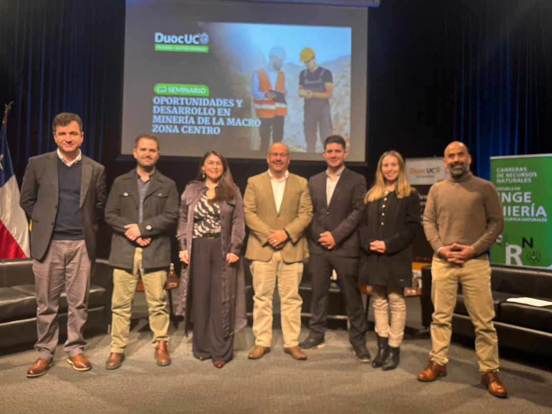 Con gran participación de representantes de la industria, la academia, estudiantes y colegios técnicos de la especialidad, Duoc UC fue el anfitrión del seminario “Oportunidades y Desarrollo en Minería de la Macro Zona Centro”, realizado el viernes 22 de agosto en el marco del Mes de la Minería, jornada presidida por Romina Cayumil, Directora de la Escuela de Ingeniería, Medio Ambiente y Recursos Naturales de Duoc UC, y Aliki Constancia, Subdirectora Académica de la Sede Valparaíso, quienes junto a representantes del mundo gremial, académico y empresarial dieron inicio a un espacio de reflexión sobre el presente y futuro de la industria minera.