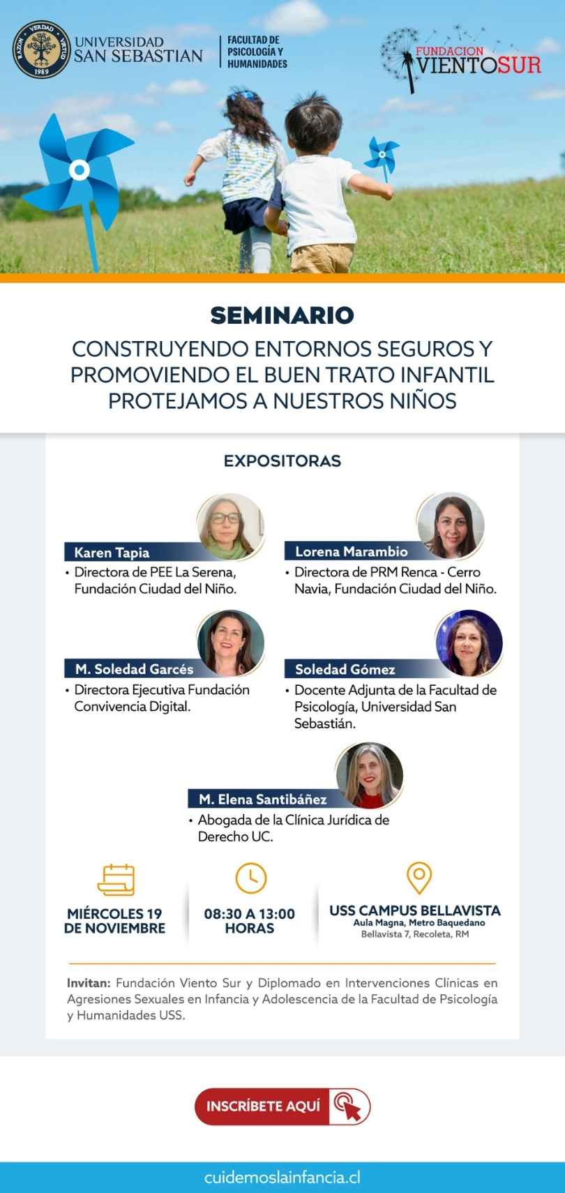 Para abordar esta preocupante realidad, se realizará el seminario “Construyendo entornos seguros y promoviendo el buen trato infantil: Protejamos a nuestros niños”, el próximo miércoles 19 de noviembre, de 08:30 a 13:00 horas, en el Campus Bellavista de la Universidad San Sebastián, Bellavista N°7. El encuentro busca abrir un espacio de reflexión y aprendizaje sobre cómo generar ambientes protectores y respetuosos, y enfrentar los nuevos desafíos del entorno digital.